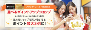 選べるポイントアップショップとは、よく利用するショップをマイページから事前に3つ登録しておくことで、登録したショップで利用した金額についてはポイントが3倍(1.5%)になる制度です。