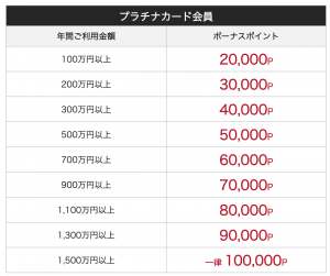 また、年間の利用額に応じたボーナスポイントがもらえます。
