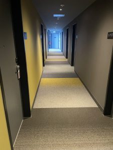 ドイツのフランクフルト空港の第2ターミナルから歩いて18分ほどのモクシー。徒歩だとやや遠いですが、無料のシャトルバスが近くを通っているので合計10分ほどでたどり着けます。