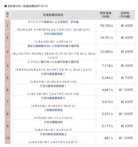 そして、あまり知られませんが、費用負担が数万円もの不妊治療系の先進医療はかなり利用者が多いです。