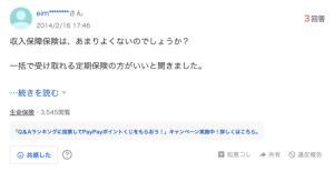 - ☆収入保障保険に関わる質問に回答